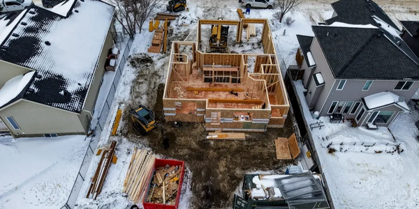 Aerial imagery documenting framing progress, site activity, and material staging to provide a clear snapshot of the build at this stage.